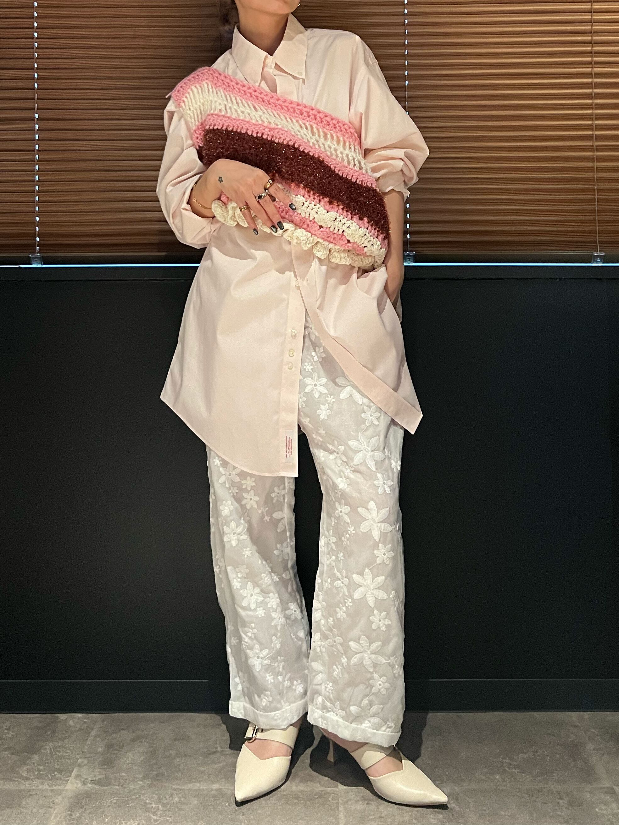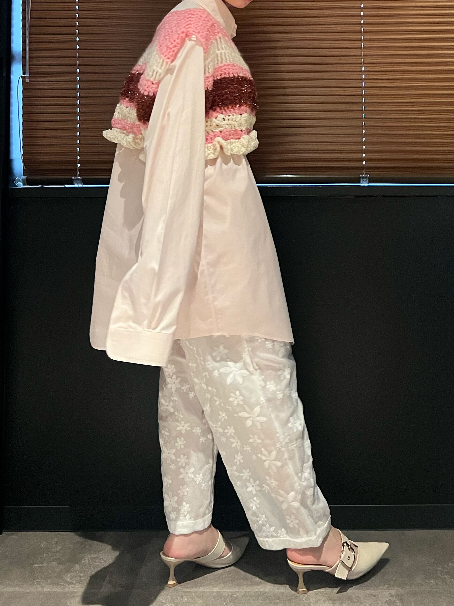 2種類の糸で編んでおり、それそれの質感がマッチしニットなのに重く見えすぎないアイテムです。