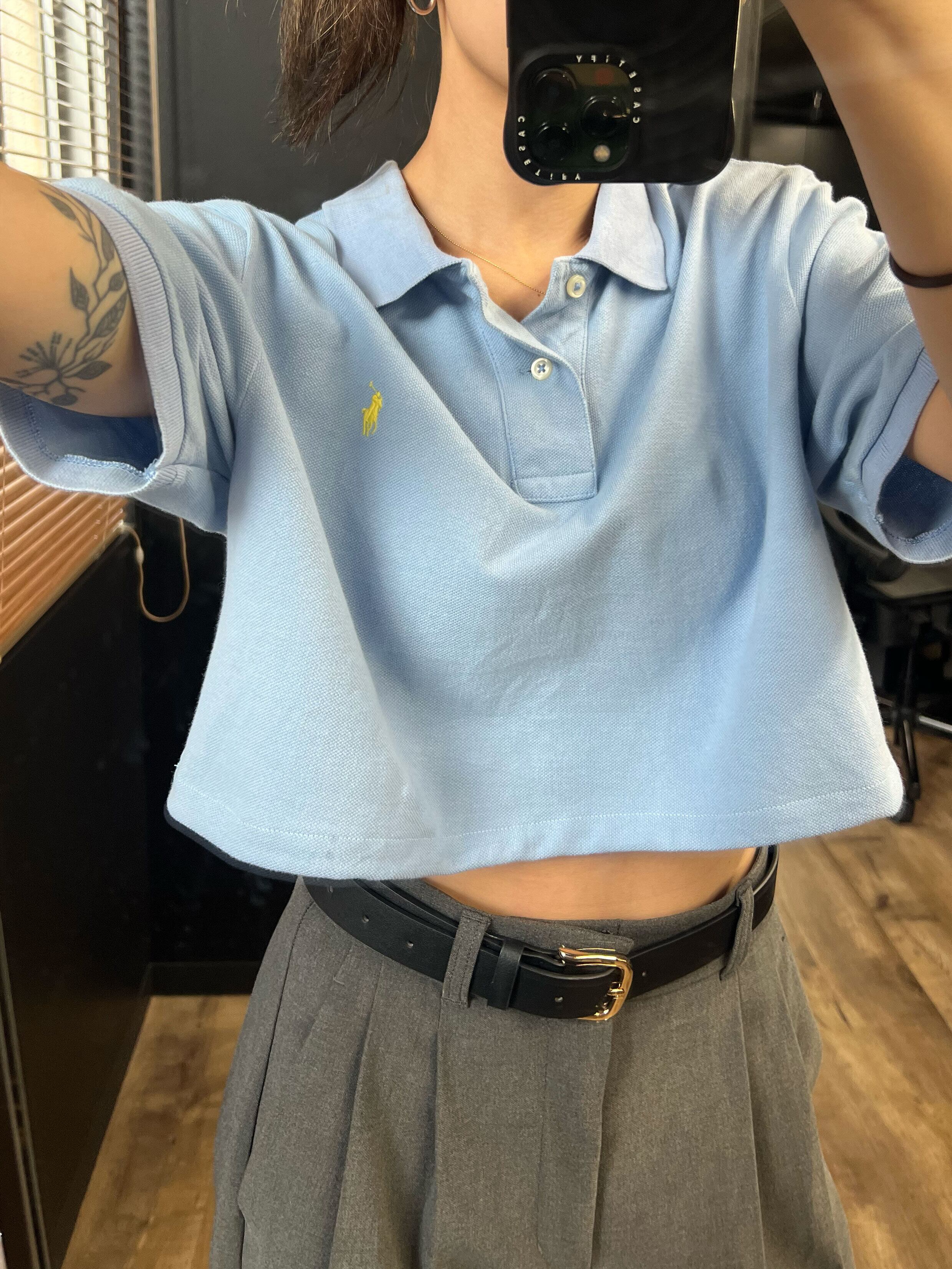 レディースサイズのポロTをクロップド丈にリメイクしました。