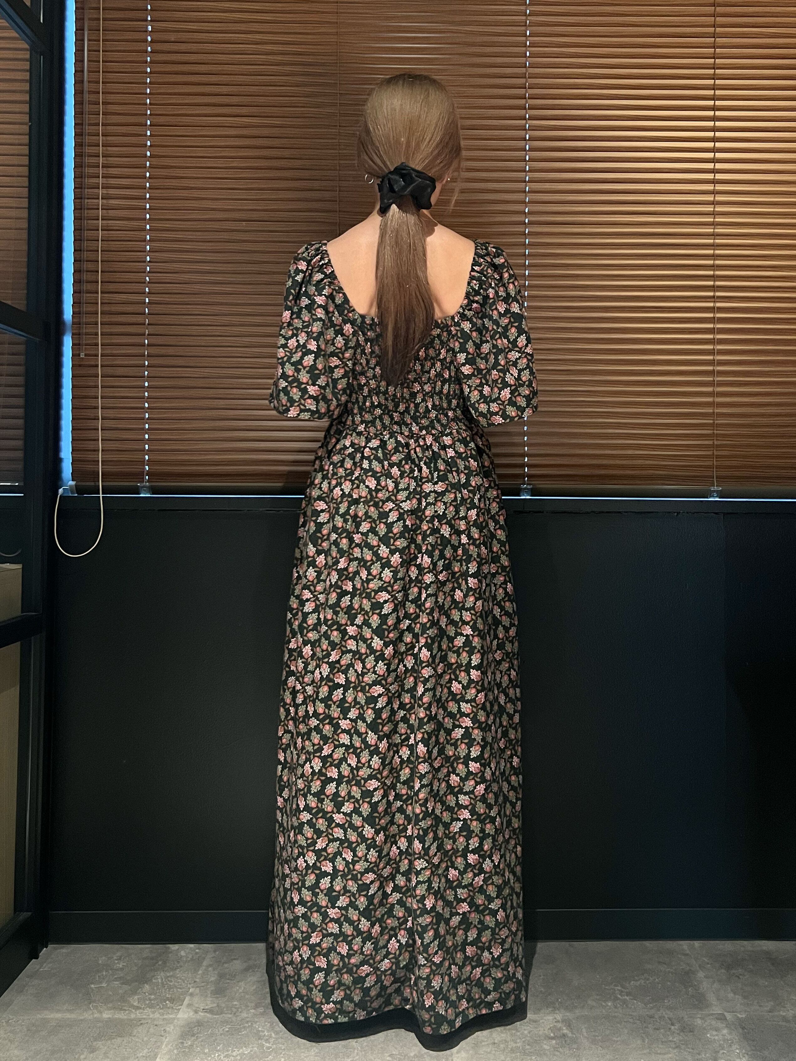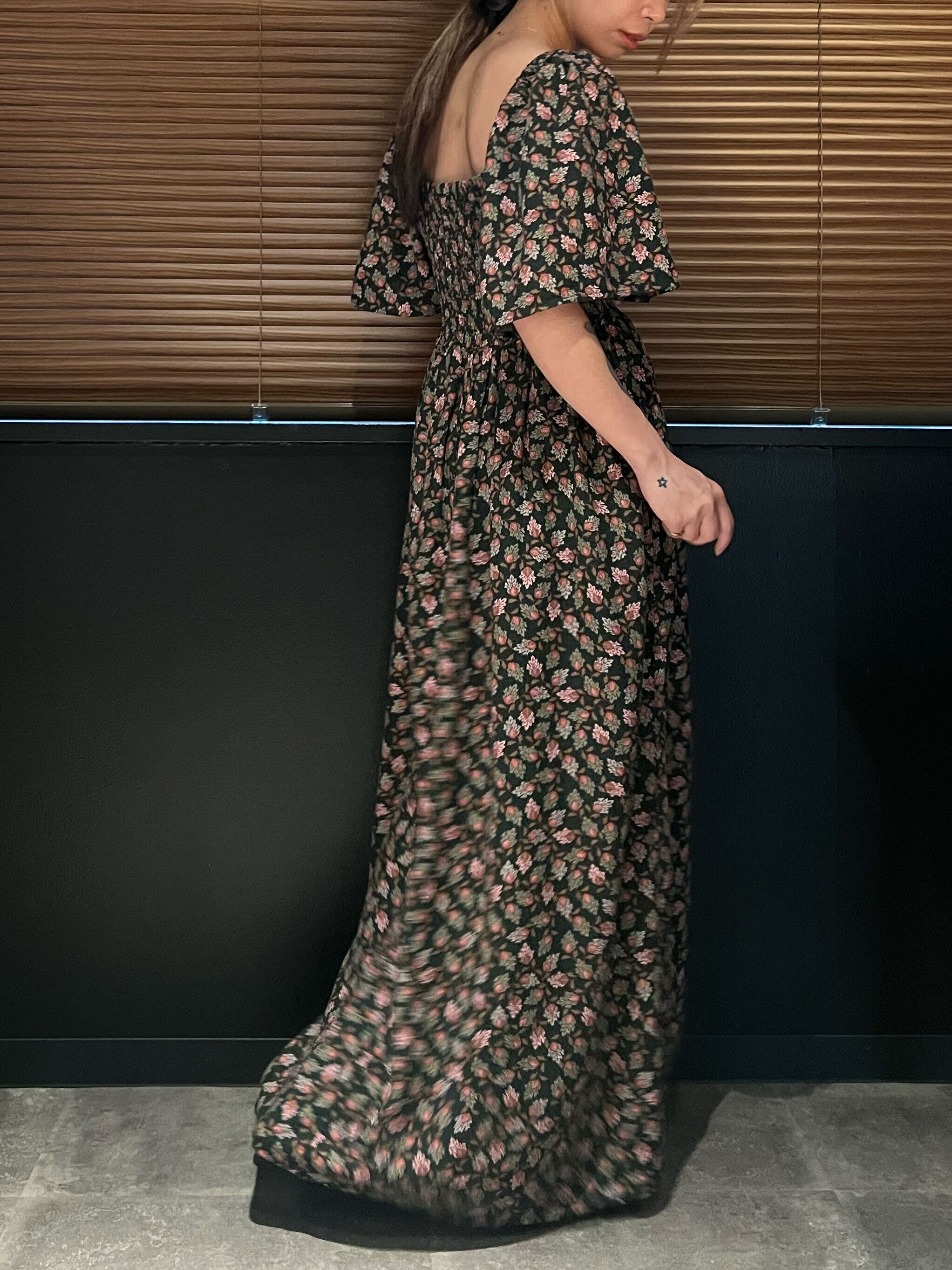 モスグリーンベースにピンクの花柄が目を惹く1枚