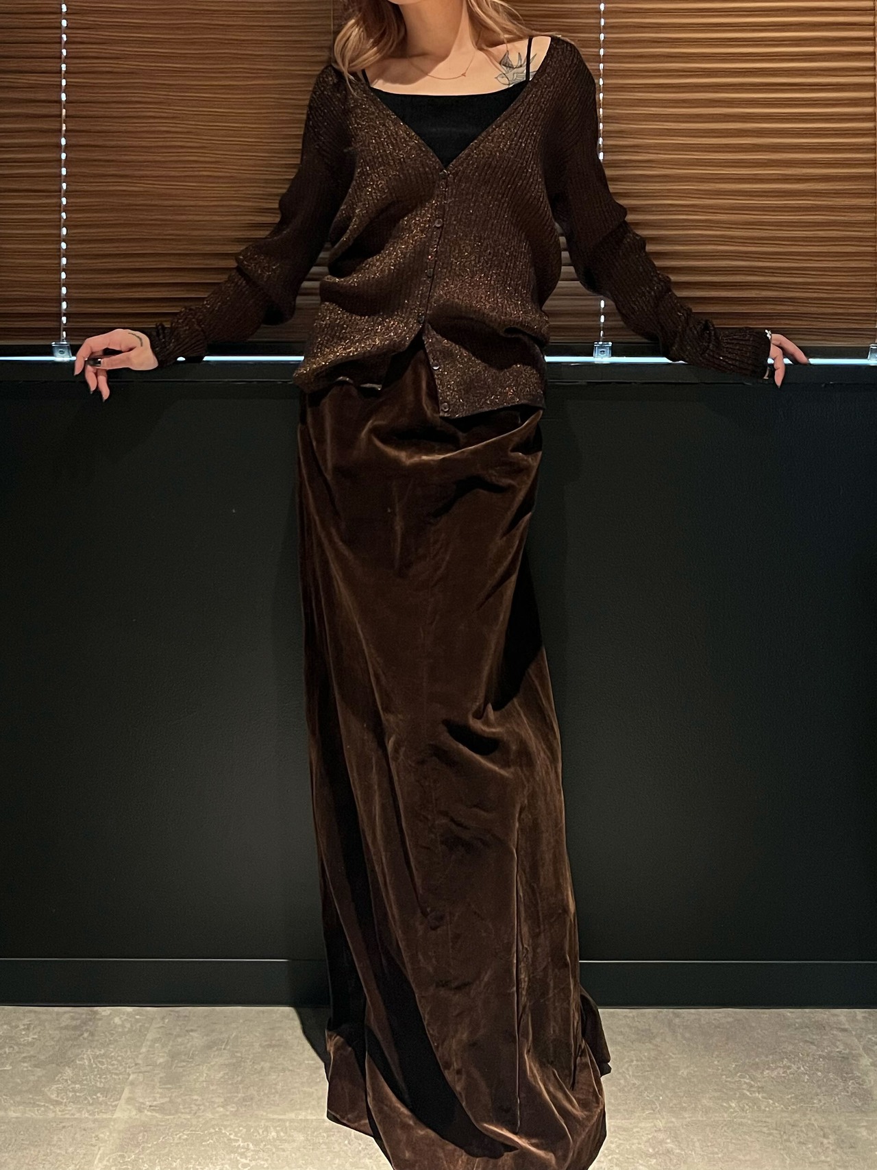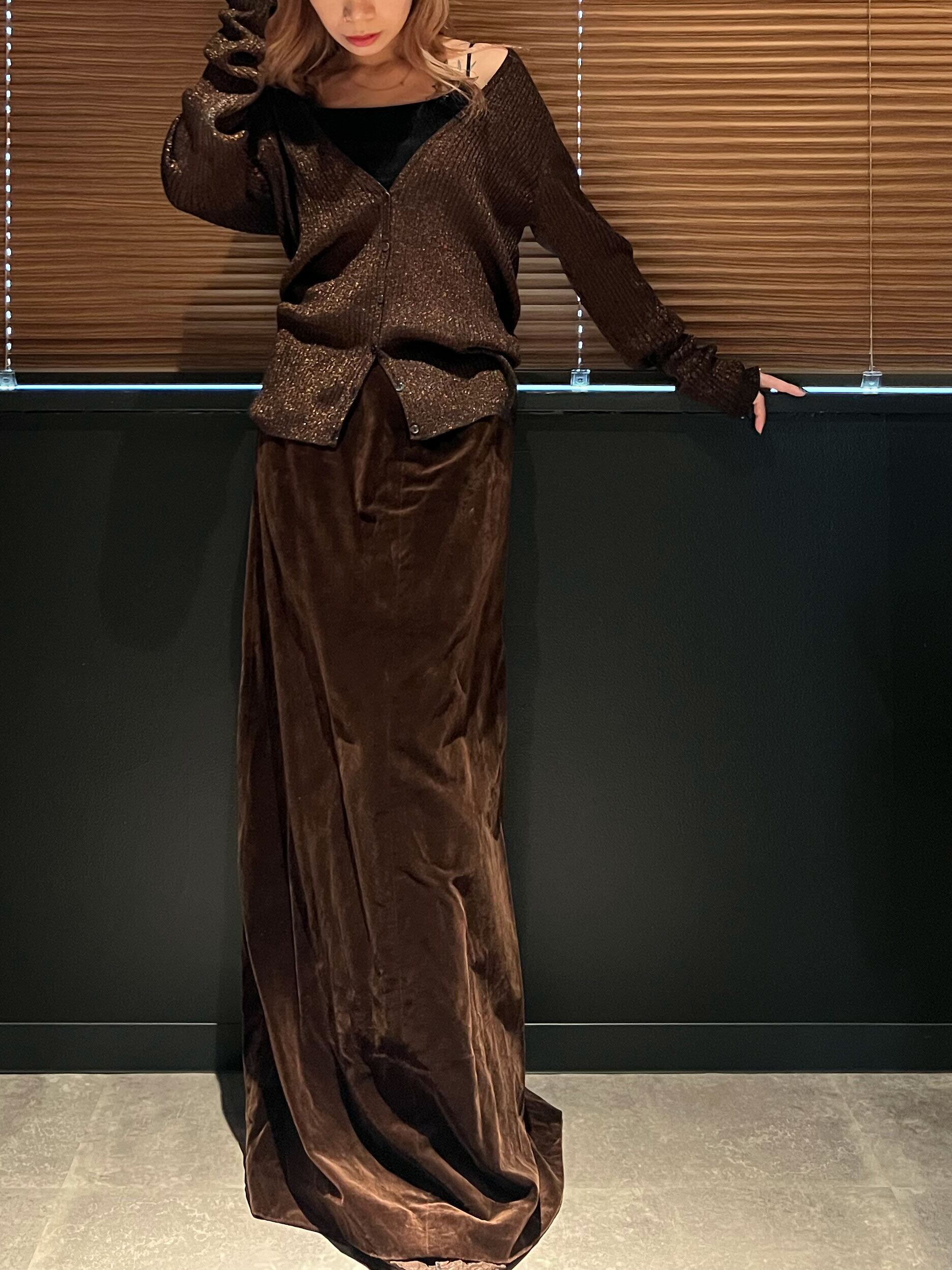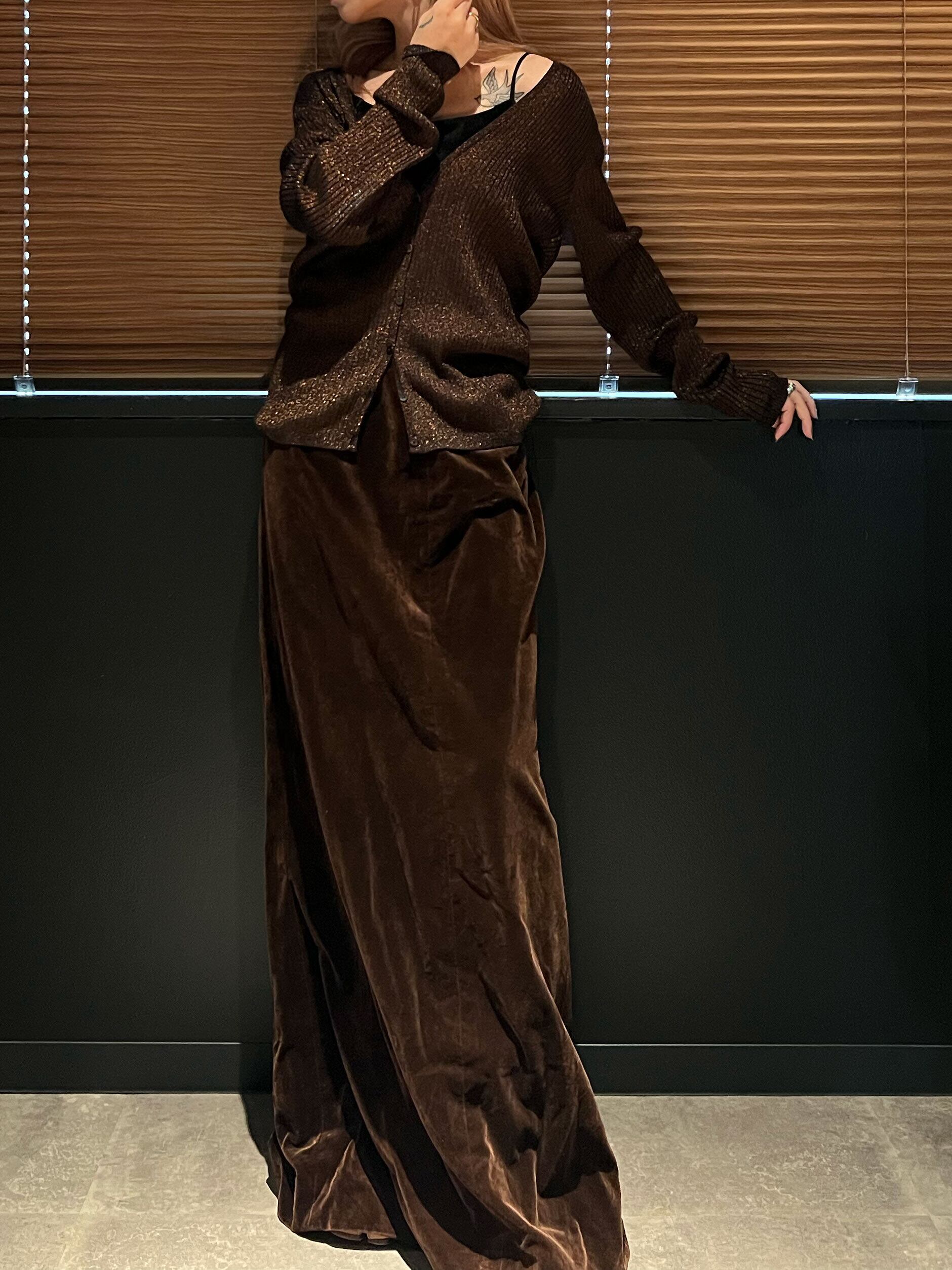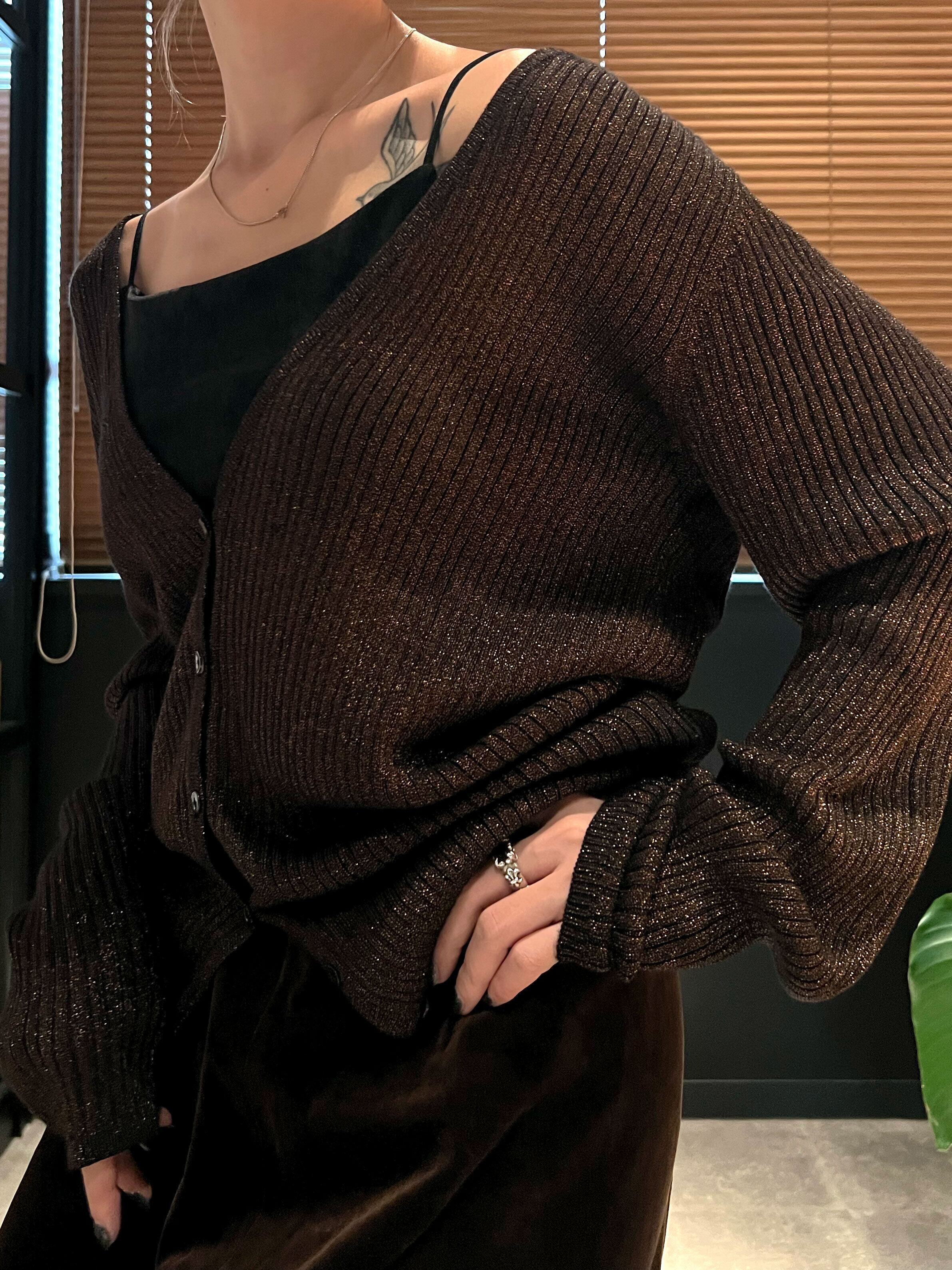 used lamé design rib knit cardigan ( orange lamé )